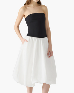 A contrasting drop-waist bodice hugs your curves in this all-cotton sundress made with a flared skirt that has convenient pockets.