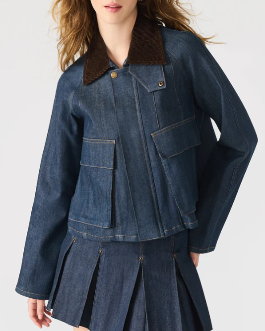 The JUSTINA BARN long-sleeved, button-up jacket features a classic collar and two functional front pockets, combining practicality with timeless style. Crafted with a refined layering option suitable for various occasions. The structured design ensures a polished look while providing comfort and utility. Ideal for those seeking a sophisticated yet functional outerwear piece.