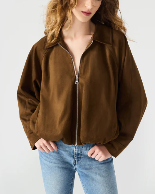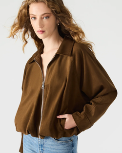 This MACKEY long-sleeved zip-up jacket features a structured collared neckline and two functional front pockets, combining practicality with a polished look. Crafted for versatility, it offers both comfort and style, making it an essential layering piece for transitional weather.