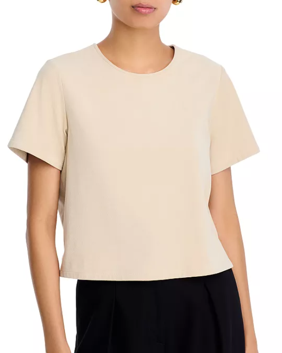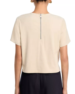 This chic top features a crew neckline, short sleeves and a back zipper accent. An elevated wardrobe basic that is sophisticated and chic.