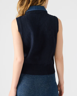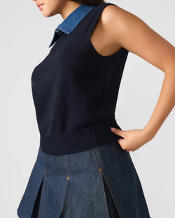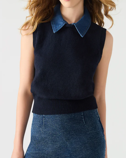 Elevate your layering game with the JEANE sweater vest top. Crafted for versatility, this sweater vest offers a refined knit texture and a multi-tone design that seamlessly complements both casual and polished outfits. It's tailored fit ensures comfort while adding a sophisticated dimension to your wardrobe essentials. Ideal for transitional weather, it pairs effortlessly with shirts or blouses for a modern, expert-curated look.