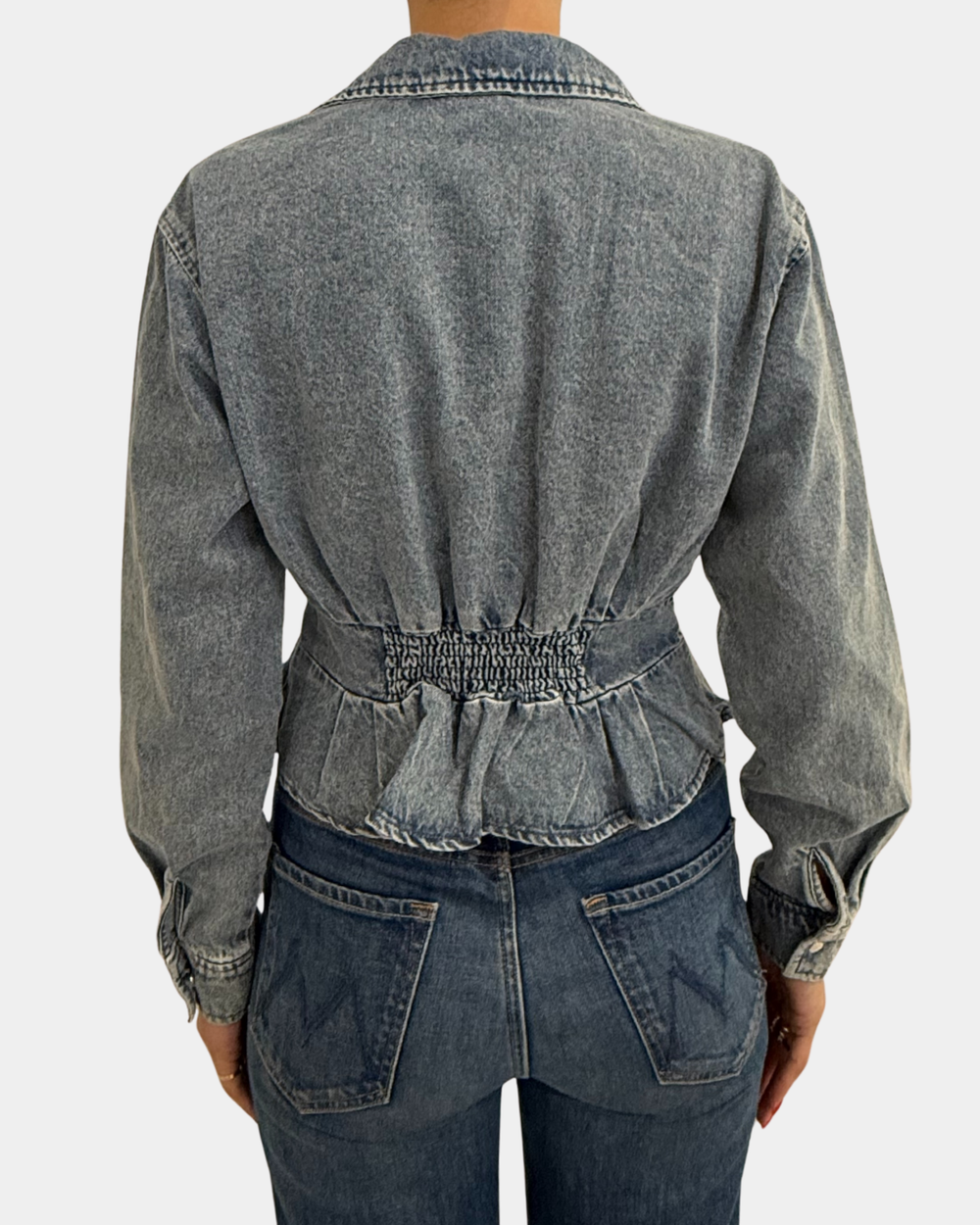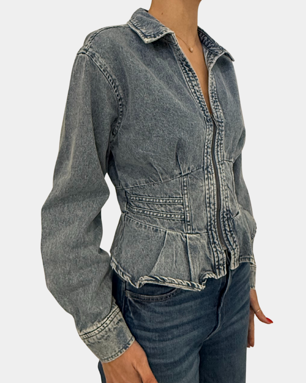 The Steve Madden Aria in denim brings the perfect mix of fun and fabulous. With a chic deep V-neckline and a playful pleated peplum hem, this piece adds instant personality to your look.