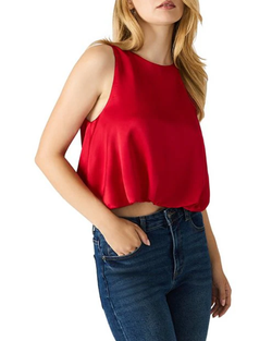 This sleeveless satin top from Steve Madden delivers modern elegance in a cropped silhouette. The smooth fabric and dark red hue create a polished, versatile piece perfect for layering or standalone styling.