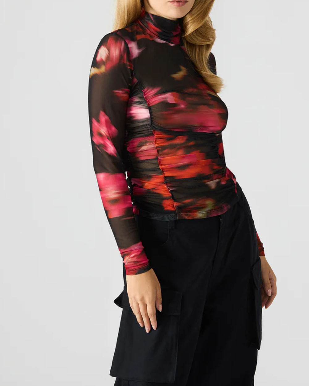 Elevate your layering game with the Steve Madden Taylore Top, featuring a delicate blurry floral mesh design. This fitted turtleneck delivers sophisticated coverage with long sleeves, perfect for creating polished, dimension-rich outfits. The sheer mesh construction adds visual interest while maintaining a refined silhouette.