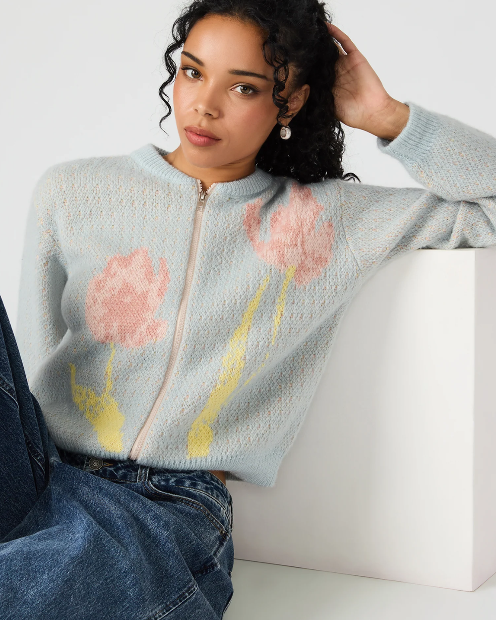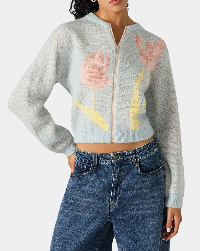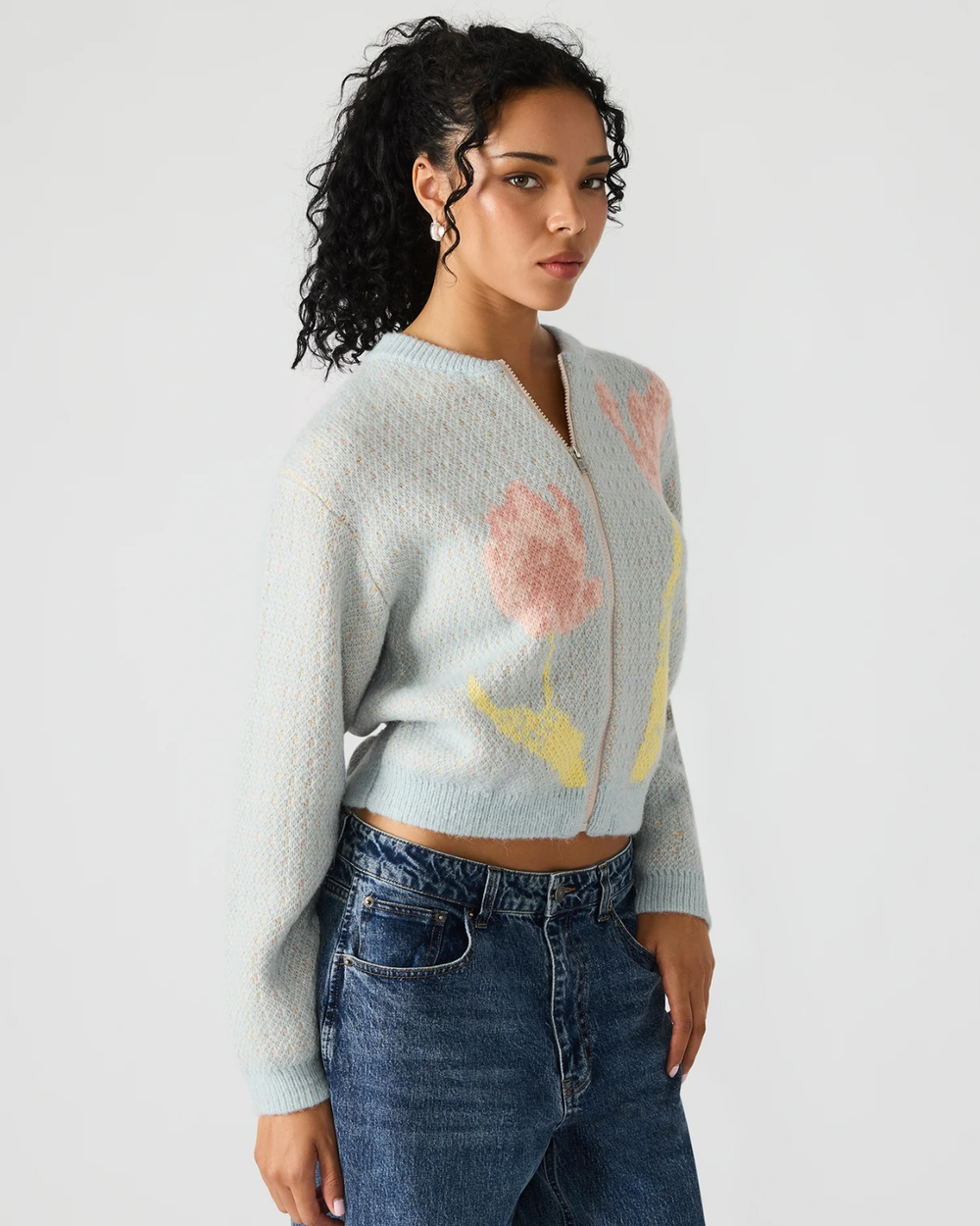Meet your new favorite layering piece—the Steve Madden Jena Jacket in Multi. This charming sweater jacket pairs a cozy knit feel with polished structure, all wrapped up in a gorgeous floral print that steals the show.