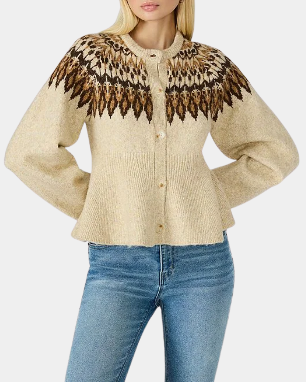 The Steve Madden Kyndra Cardigan delivers sophisticated style with its distinctive fair isle knit pattern in rich, complementary hues. A refined layering essential that pairs effortlessly with any wardrobe foundation.
