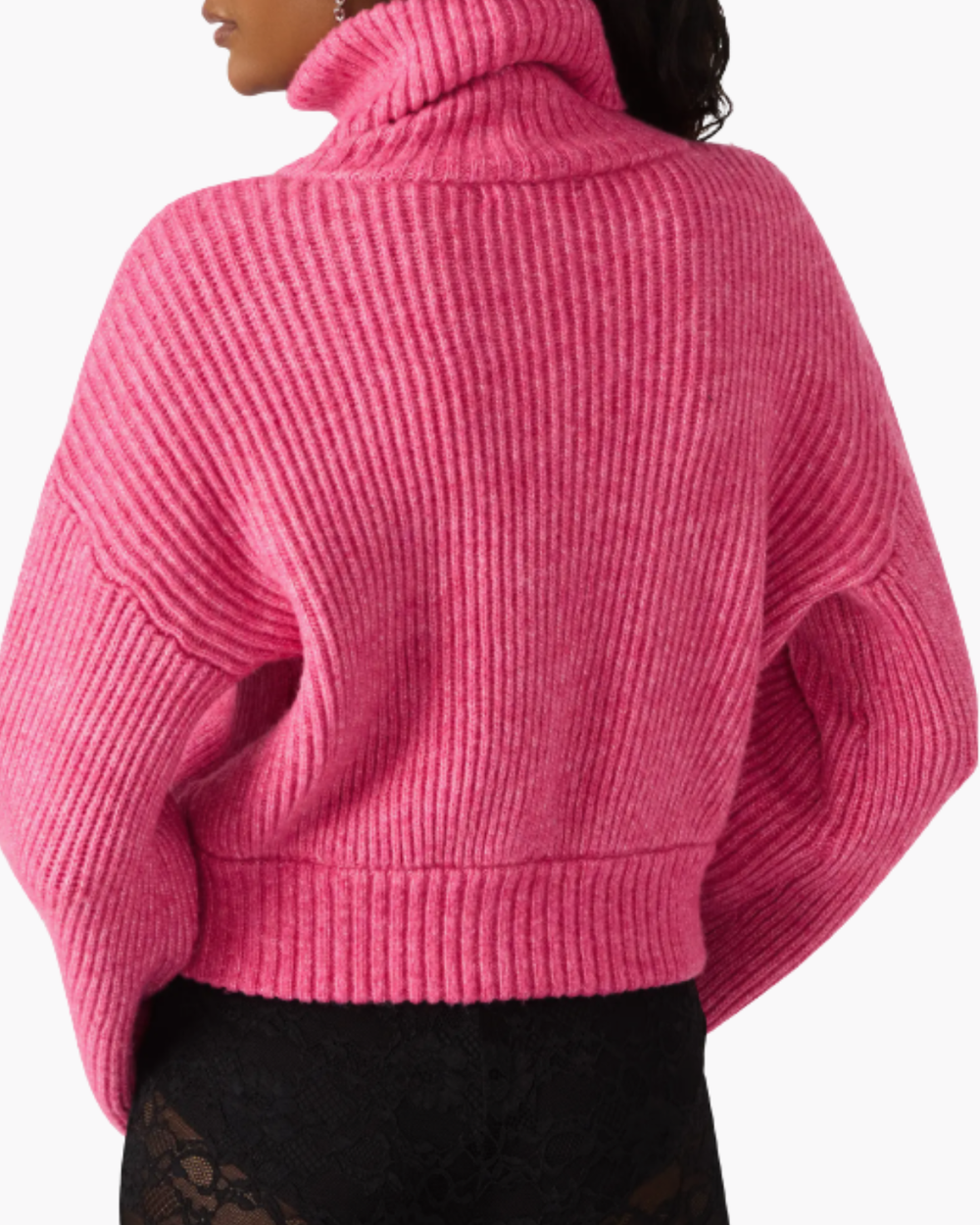 Embrace effortless sophistication with this Steve Madden turtleneck sweater. Featuring generously draped wide sleeves and dropped shoulders, it delivers that coveted cozy-chic aesthetic. The cropped silhouette creates a flattering, modern proportion perfect for layering or pairing with high-waisted bottoms.