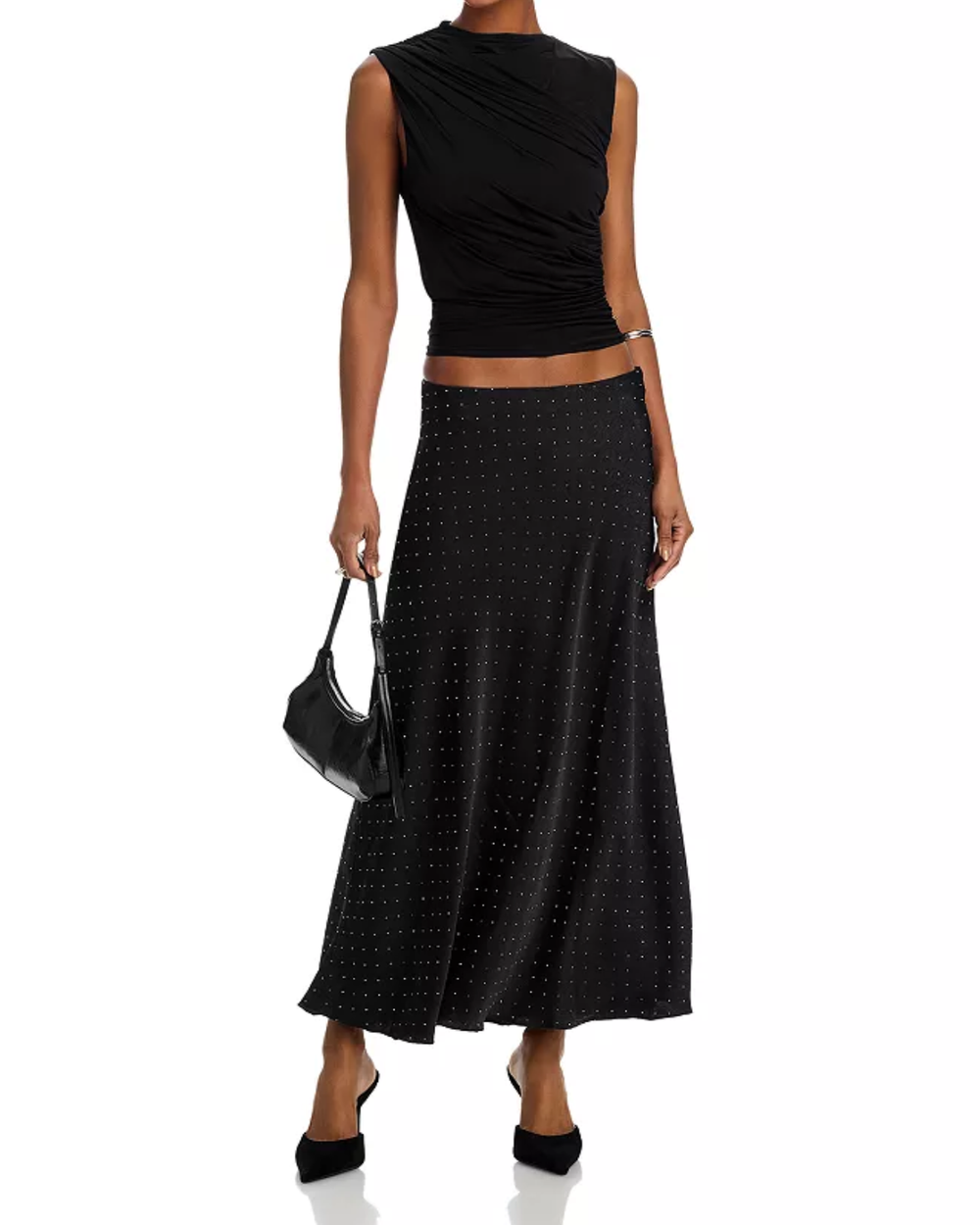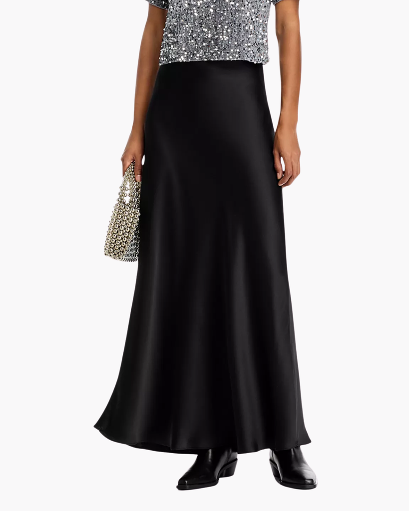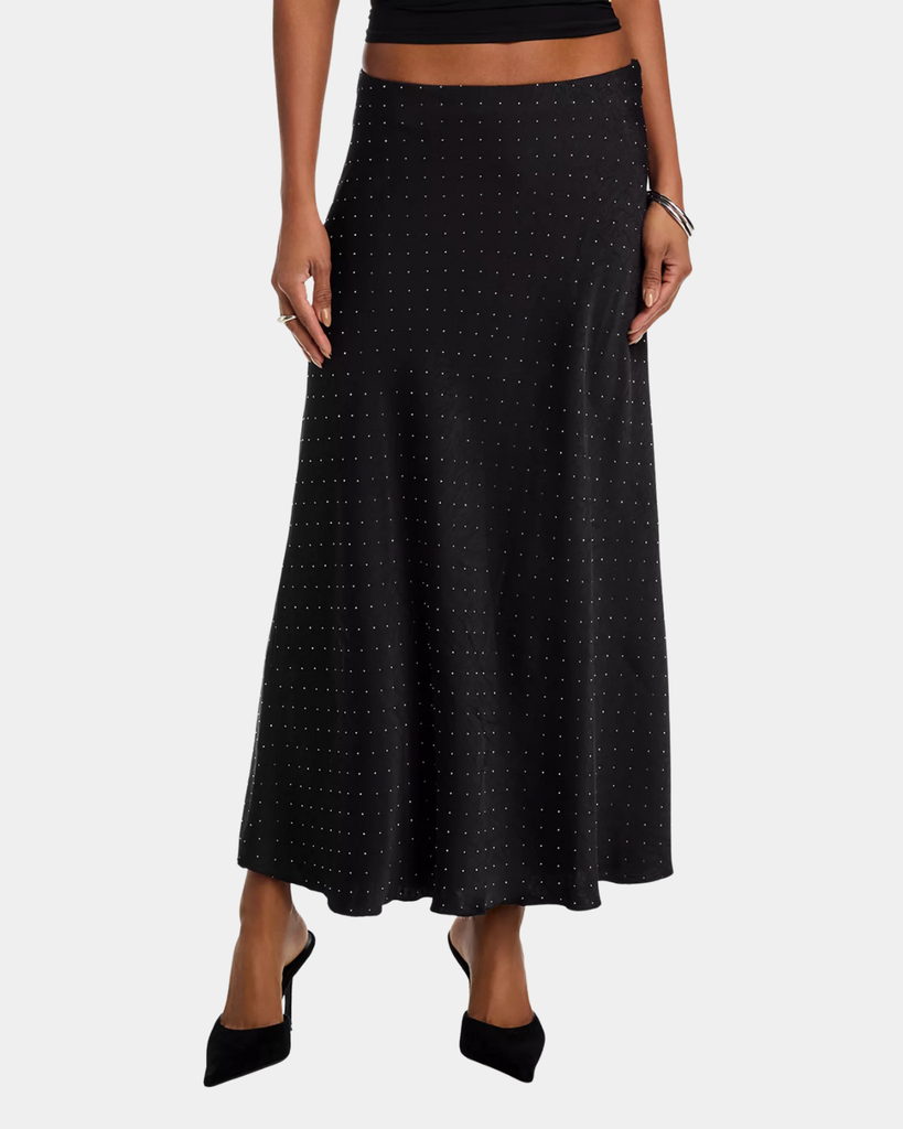 The Steve Madden Jeannie Skirt in black delivers effortless sophistication with its maxi silhouette. This versatile piece transitions seamlessly from day to evening, offering a flattering drape that works with everything from casual tees to polished blouses. A wardrobe essential that combines timeless style with contemporary design.