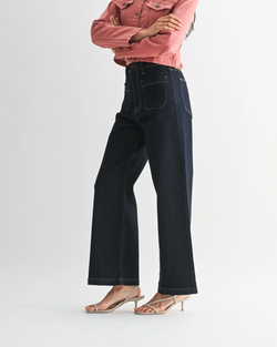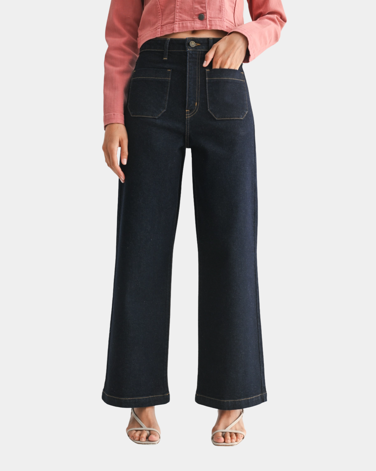 Effortlessly cool and undeniably comfy, these dark wash wide-leg jeans are your new go-to. The patch pockets add that perfect touch of retro charm while the relaxed fit keeps you feeling free all day long.