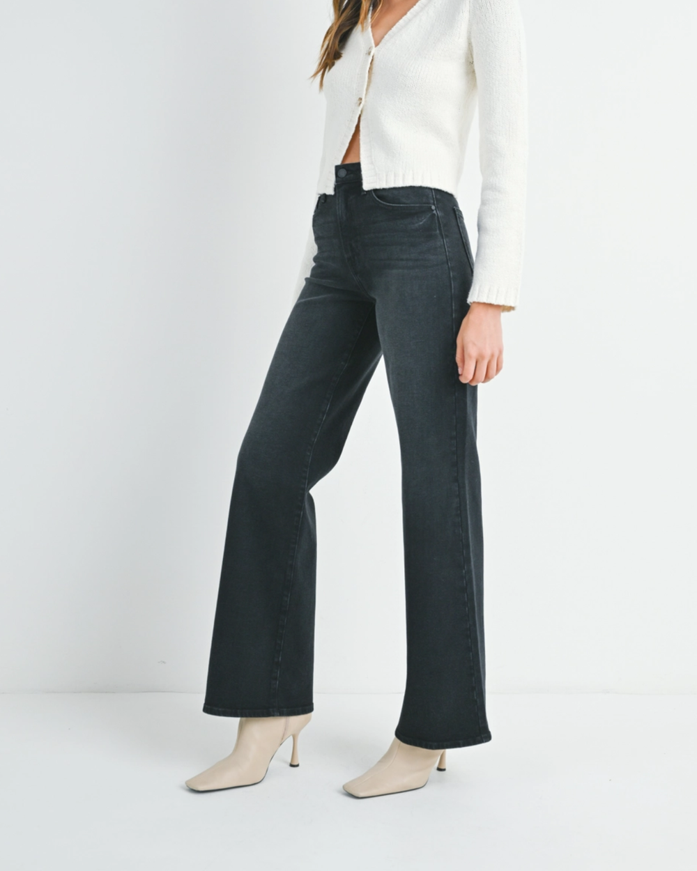 Meet your new go-to: palazzo jeans that nail the sweet spot between comfy and fabulous. The washed black hue pairs with literally everything, while the relaxed wide-leg silhouette lets you move freely without sacrificing that polished vibe.