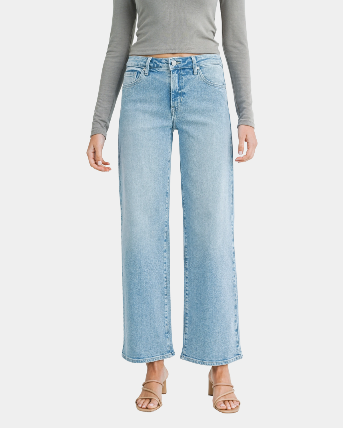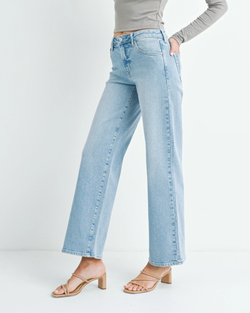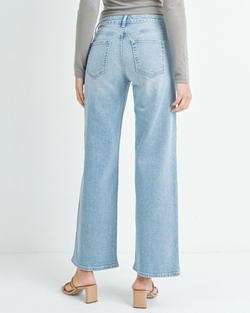 Expertly proportioned with a mid-rise waist and streamlined slim fit that opens into a generous wide leg for modern movement and silhouette. A foundational piece that bridges casual and sophisticated aesthetics with effortless sophistication.