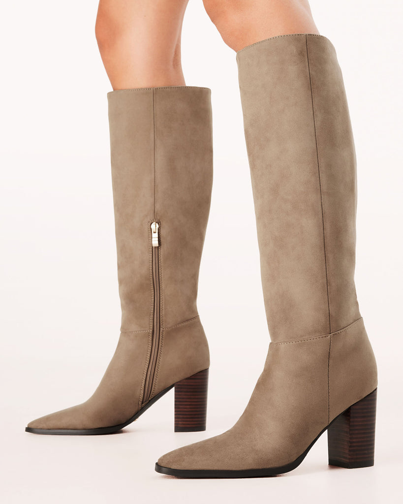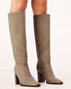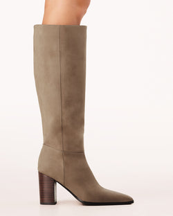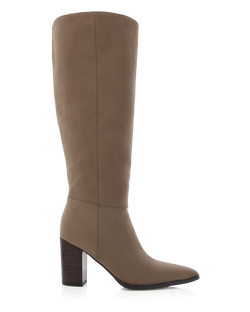 A classic tall boot set on a stacked heel that is comfortable, versatile and chic. A must to style with everything from denim to dresses, these boots are a wardrobe staple.