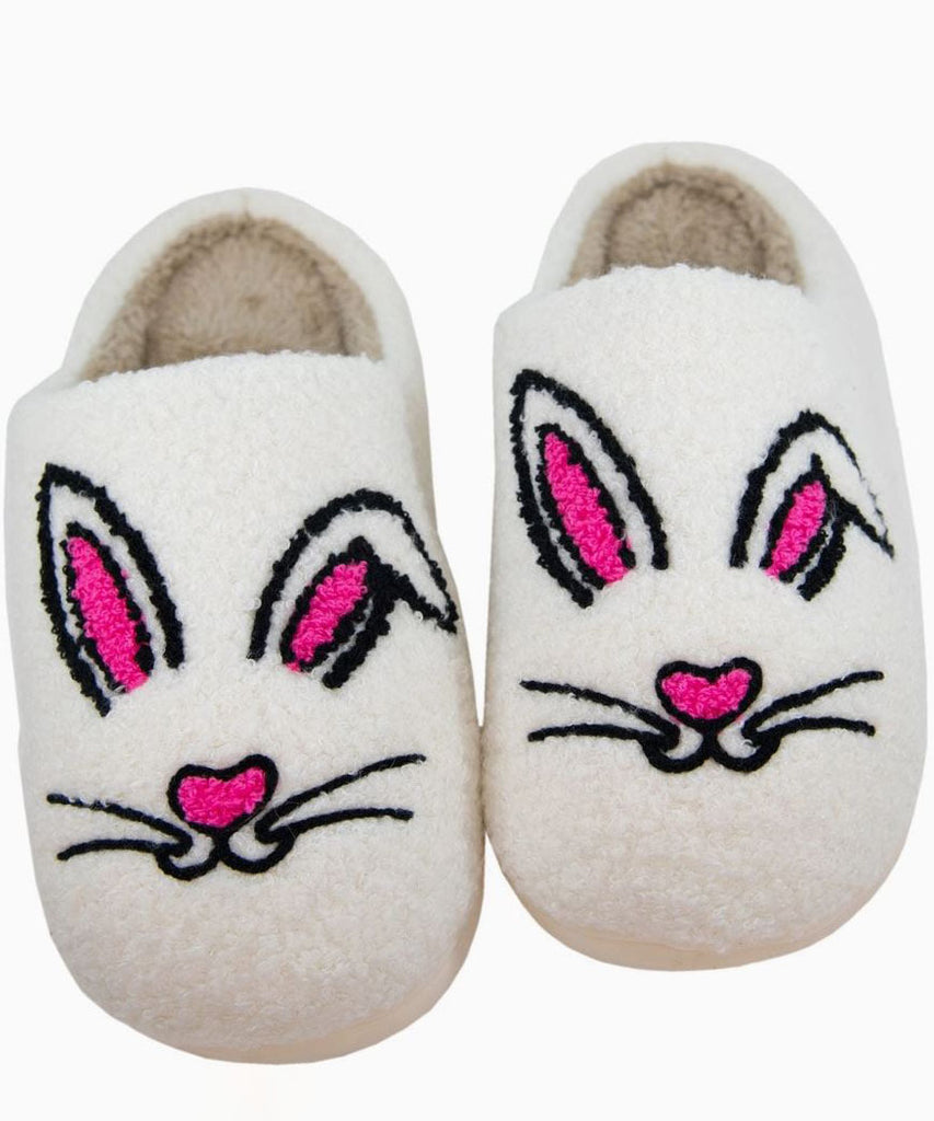 These fuzzy slippers feature an enchanting bunny face design, making them an irresistible addition to your comfy shoe game! Perfect for the upcoming Easter season or any time you want to add a touch of whimsy to your relaxation routine.