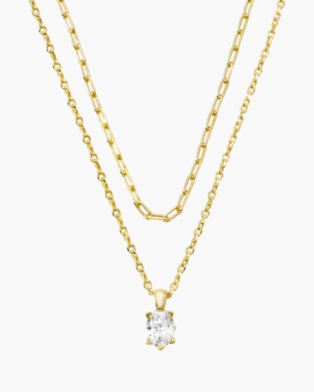 HomeNecklacesKendra Scott Multi Strand Necklace - Gold/White Crystal