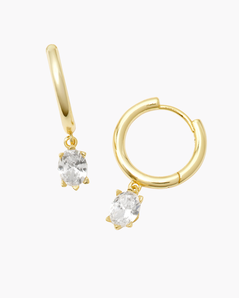 These Kendra Scott Cailin Huggie Earrings in gold with white crystals offer a timeless elegance perfect for elevating any ensemble. Their refined design combines subtle sparkle with a sleek silhouette for a sophisticated, polished look.