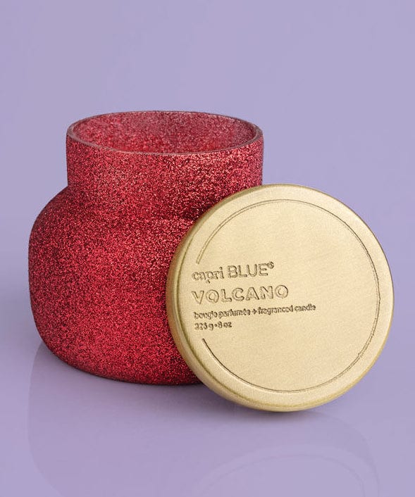 Turn up the glitz with this beautiful Volcano Glam petite jar. Fill the room with the perfect year-round Volcano fragrance. This iconic fragrance combined with a red glitter makes for the holiday gift we've all been waiting for.