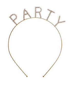 Ready to party? Look no further than this Pave Crystal Party Headband in gold. With sparkling crystal letters spelling out "Party," this metal headband is the perfect accessory for any celebration. Shine on, party animal!