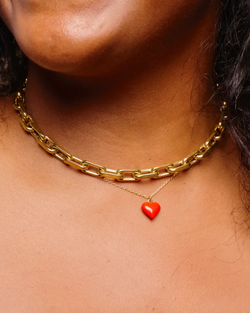 This gold link chain necklace is a must to wear solo or for layering. Wear as a choker or use extender for a longer look.