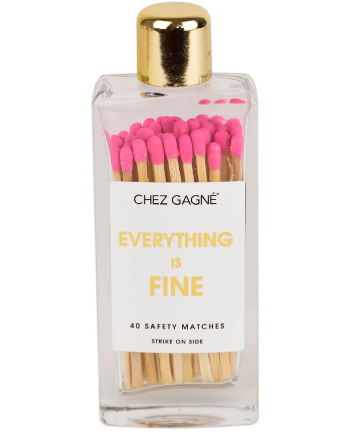 Everything is Fine - Glass Bottle of 40qty Pink Tipped Safety Matches1.84 x 4.75, 1.8oz Glass Bottle with Gold Lid contains 40qty Wooden MatchesStriker on Side of Bottle for easy strike and light