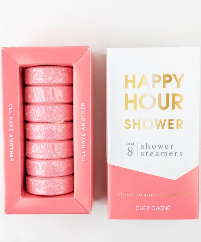 Set of 8 Aromatherapy Shower Steamers Made with Essential Oils Scent: Blood Orange Mimosa Box Size: 6 x 3 x 2 Set of 8: .8 oz Tablets / Tablets Measure 1.75 x.5