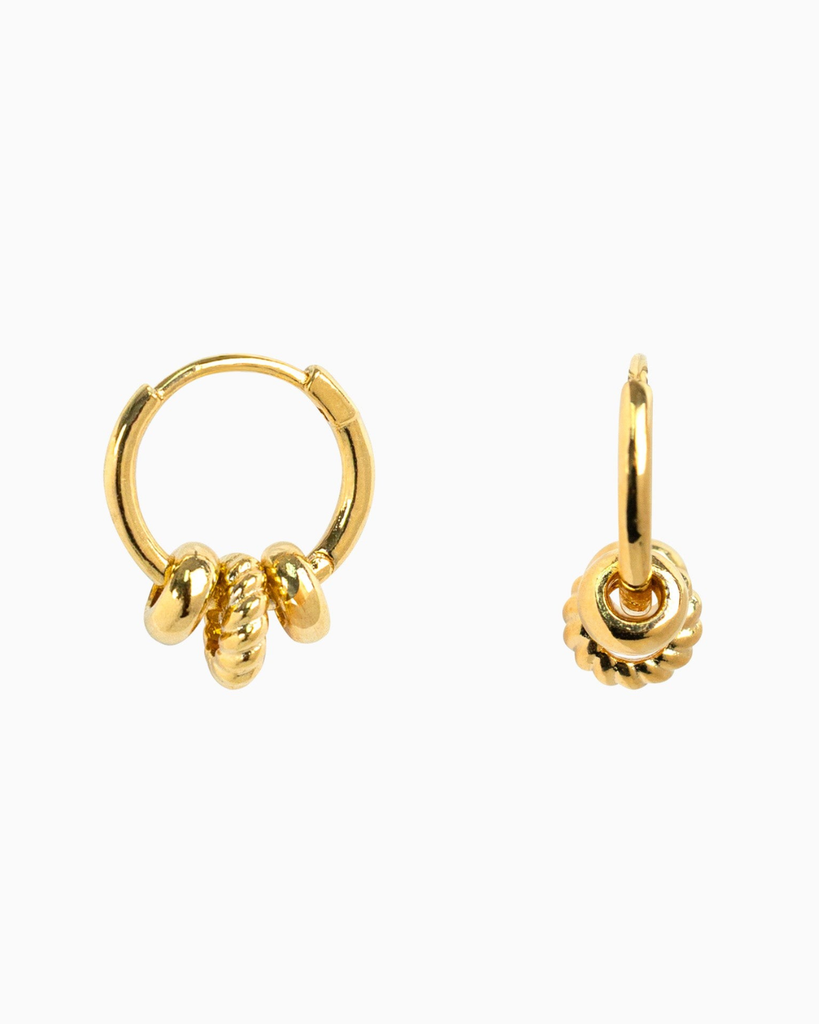 These mini gold hoops are all about playful elegance, featuring rope-textured rondelle details for a twist on a classic look. Lightweight and charming, they add a sprinkle of sparkle that brightens up any outfit with effortless style.