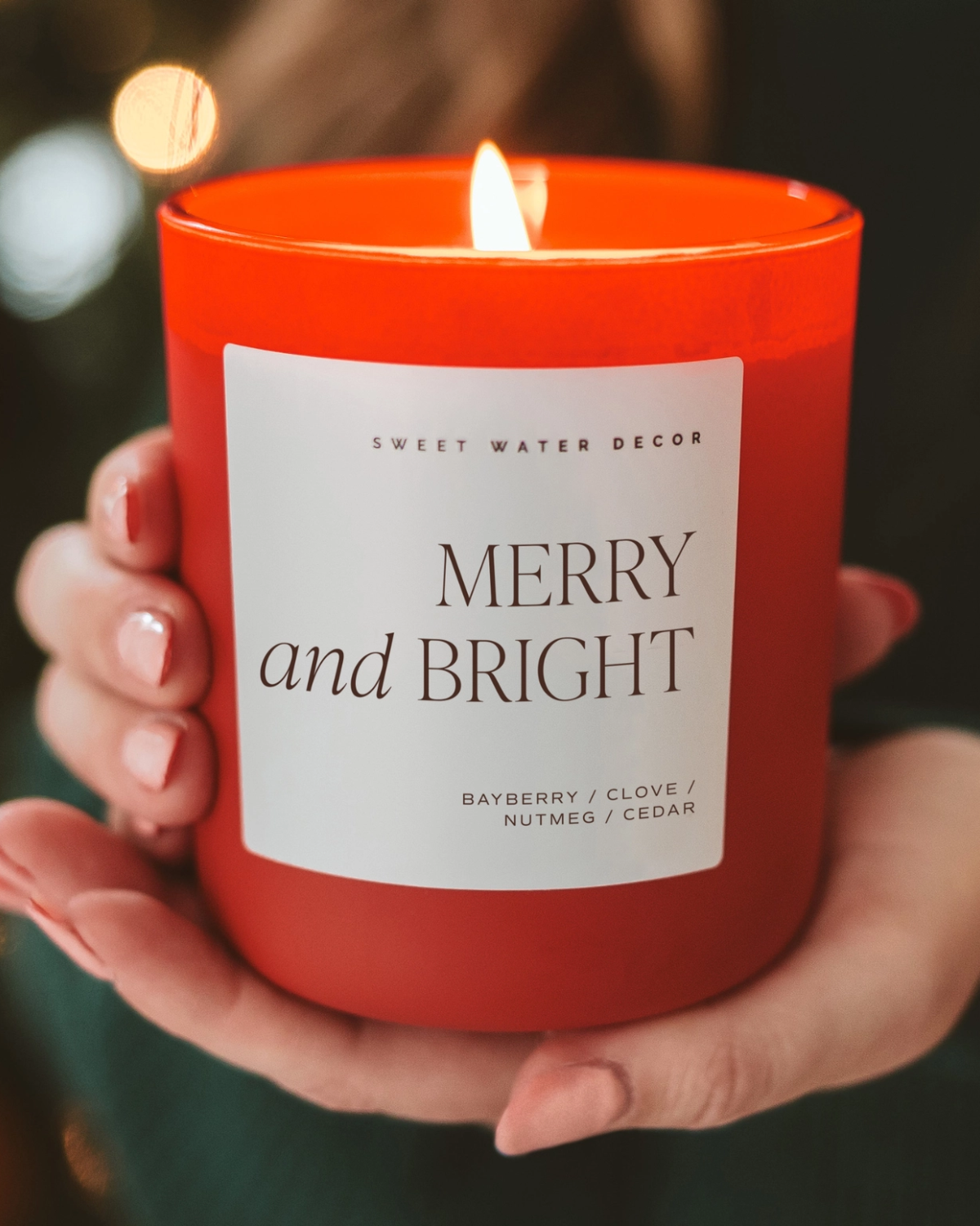 Merry and Bright Candle fills the air with cozy bayberry, clove, nutmeg, cedar, and a lively mix of cinnamon, ginger, and cloves. A festive favorite, it’s perfect for holiday decor, gifts, and stockings!
