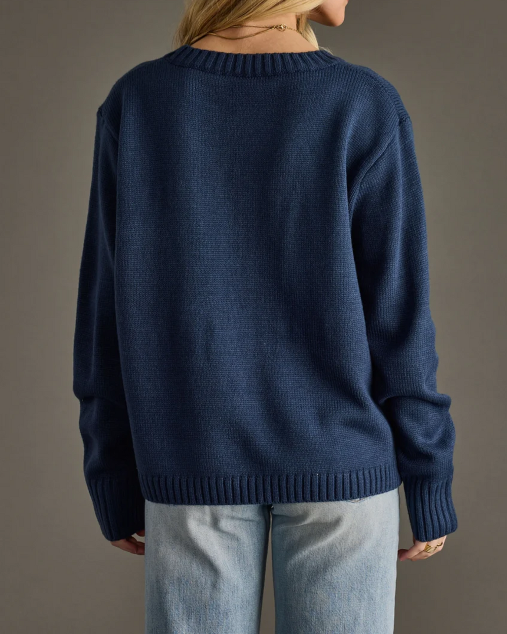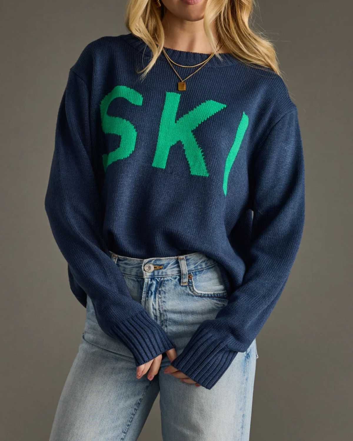 Cozy up and hit the slopes in style with our Ski Sweater in navy—a fun twist on classic winter warmth. Its snug fit and vibrant hue make chilly days your new favorite adventure.