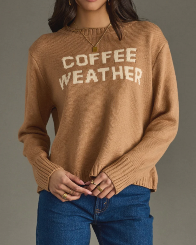 Wrap yourself in the cozy charm of the Coffee Weather Sweater in Light Brown, perfect for sipping your favorite brew in style. This playful sweater adds warmth and a dash of fun to any chilly day.