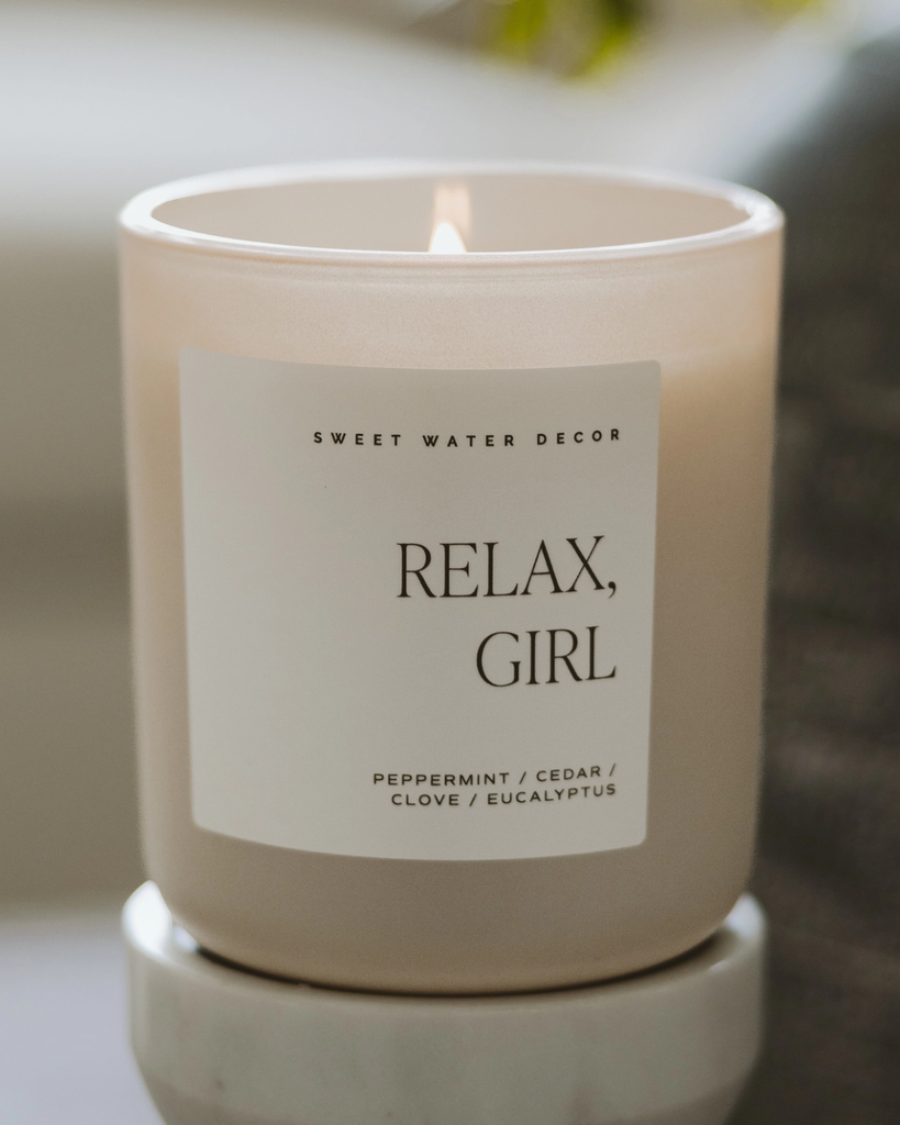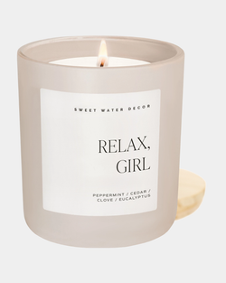 Meet your new stress-relief bestie. Relax, Girl blends cooling eucalyptus and peppermint with a hint of clove, then wraps you in warm cedar, patchouli, and vanilla. Light it up and let the good vibes take over—because sometimes you just need permission to chill out.