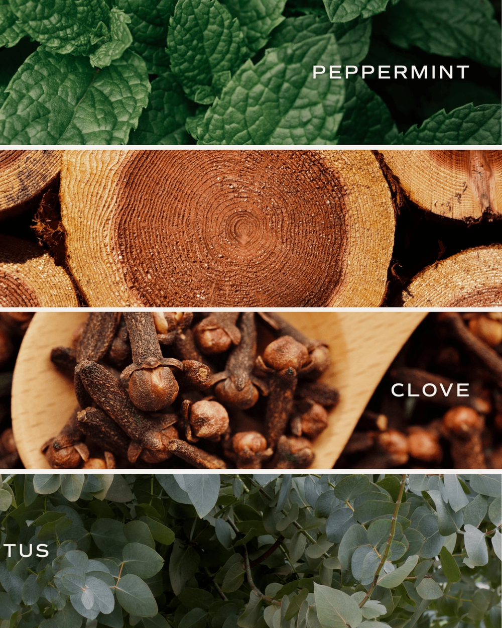 SCENT NOTES: Top: Eucalyptus, Peppermint / Middle: Clove, Powder / Base: Cedar, Patchouli, Vanilla