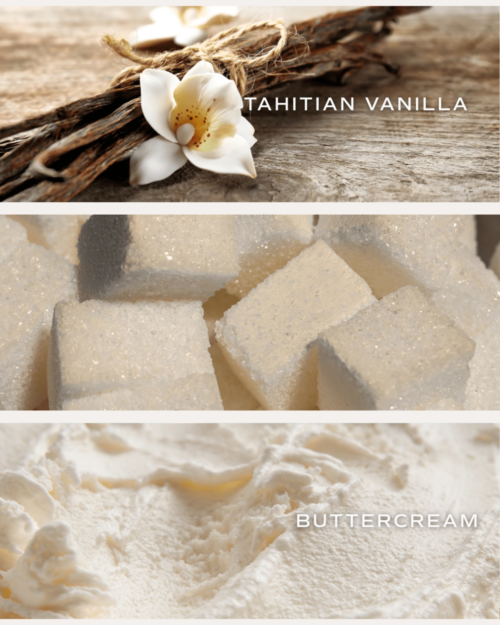 SCENT NOTES: Top: Tahitian Vanilla / Middle: Powdered Sugar / Base: Buttercream