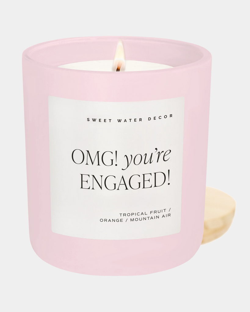 Mark the milestone with our OMG! You're Engaged candle in a chic 15oz pink matte jar. This upscaled version of our bestselling design delivers the same playful energy with Island Air's breezy fragrance and a warm glow.