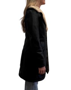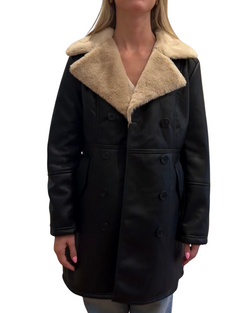 This vegan leather jacket features a fur-lined interior for exceptional comfort. Its sleek design ensures both timeless style and practical warmth for cooler days.