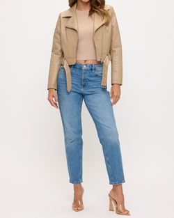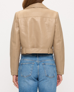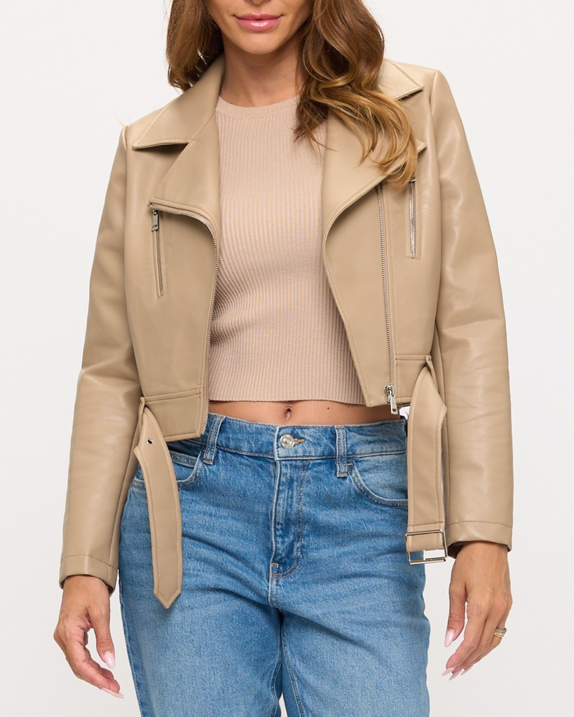 The Belted Moto Jacket delivers a contemporary update to a timeless silhouette. Crafted from smooth faux leather, it includes a asymmetrical front zipper and streamlined, minimalist details for a refined finish.