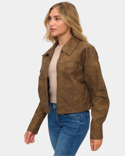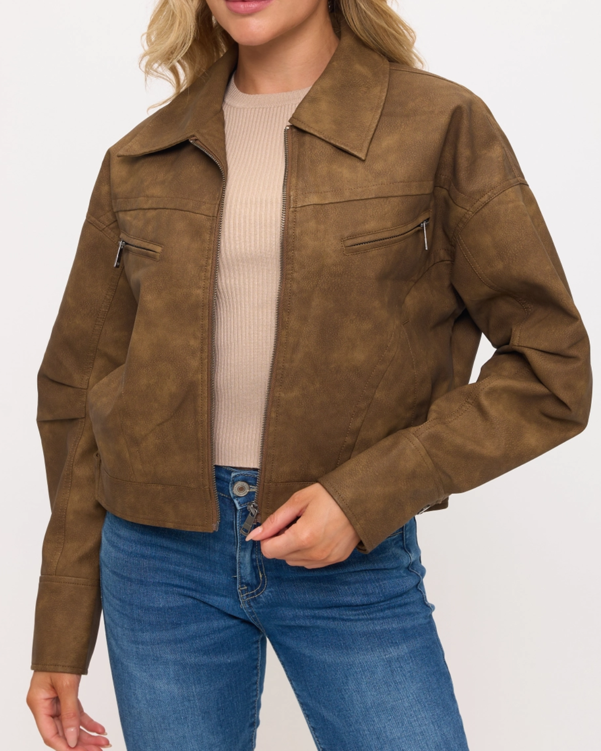 Camel moto jacket that's all swagger, zero fuss. Your new go-to for instant edge.
