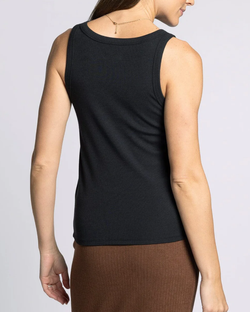 This classic sleeveless tank top features a scoop neckline and a ribbed texture. The perfect wardrobe staple for year round wear.