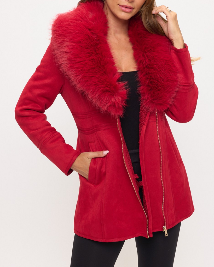 The Fur Collar Fitted Coat brings together classic style and a touch of luxe fun. Its tailored shape hugs your curves perfectly, giving you a sleek and flirty silhouette.