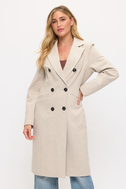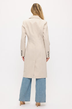 Statement-making in cream, this floor-length twill coat balances dramatic proportions with refined structure. Engineered shoulders anchor the voluminous silhouette for polished layering.