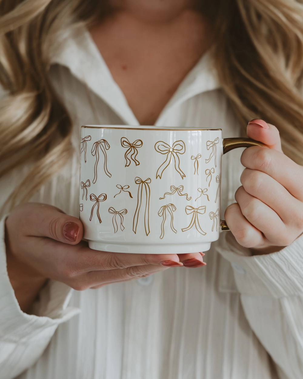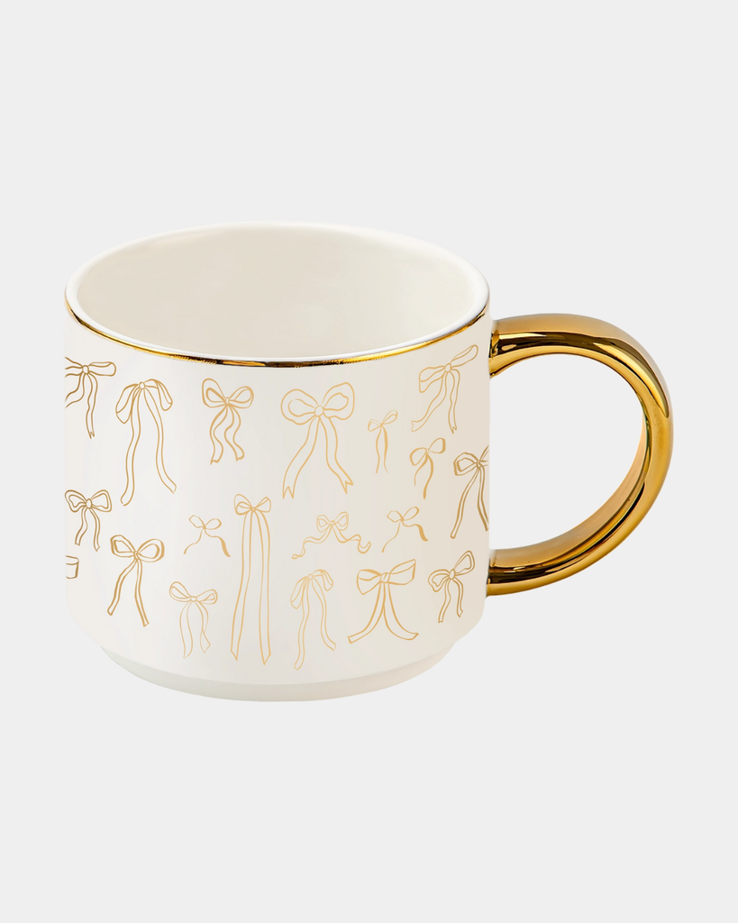 Sip with style in our Cream and Gold Bows Mug—a charming companion for your morning brew, afternoon pick-me-up, or cozy nightcap. With its delightful bow details and warm metallic accents, this mug brings a touch of elegance to every moment.