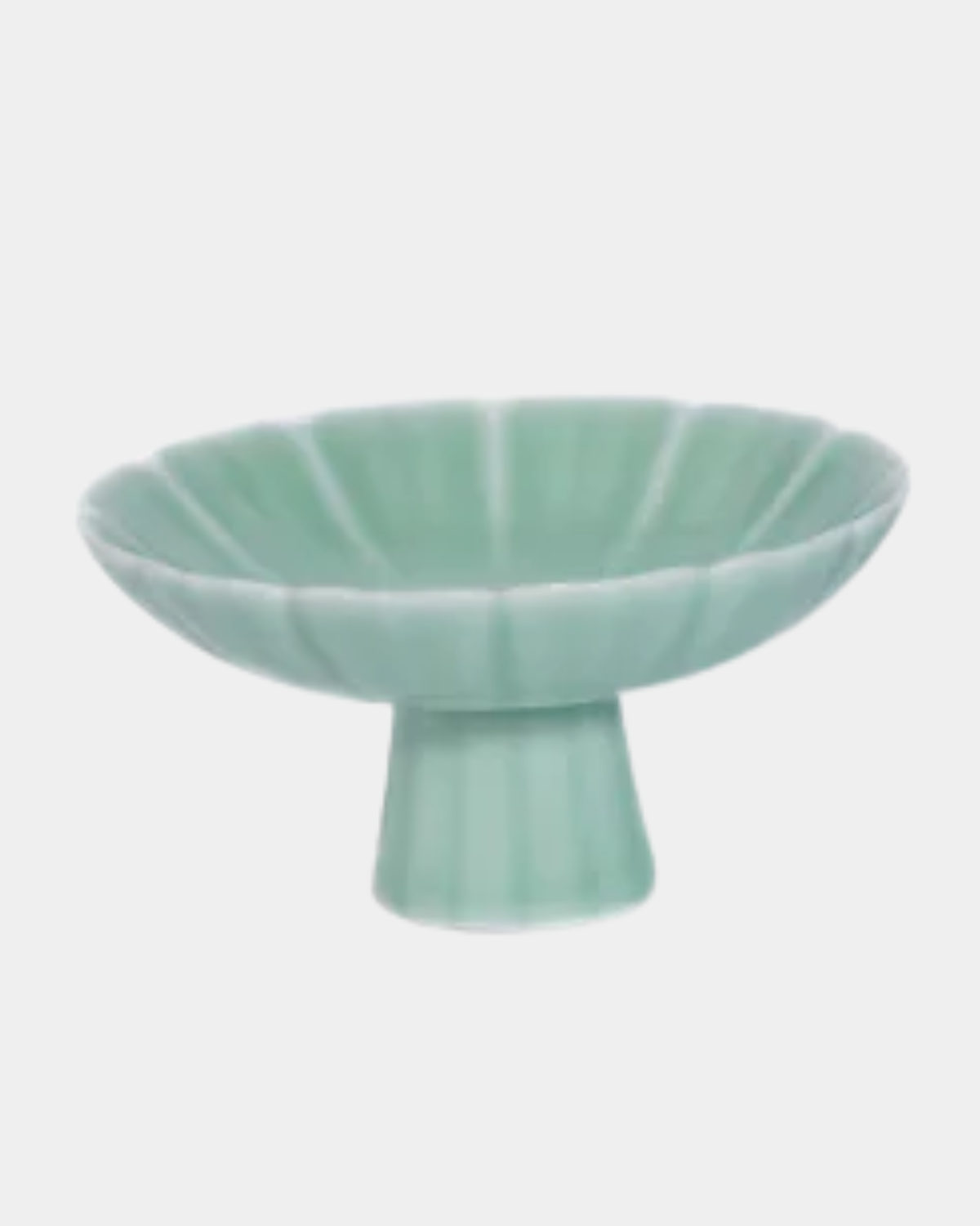 Bring a pop of pastel charm to your space with this adorable scalloped pedestal dish! The frilly edges and elevated base make it perfect for showcasing your favorite trinkets, candies, or seasonal treasures.