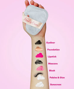 Erase all makeup with JUST WATER™ including waterproof. Our patented, water-activated, cloud-soft fibers gently & easily remove all makeup & sunscreen from pores. 2 in 1 benefit: one side erases makeup & one side exfoliates skin.