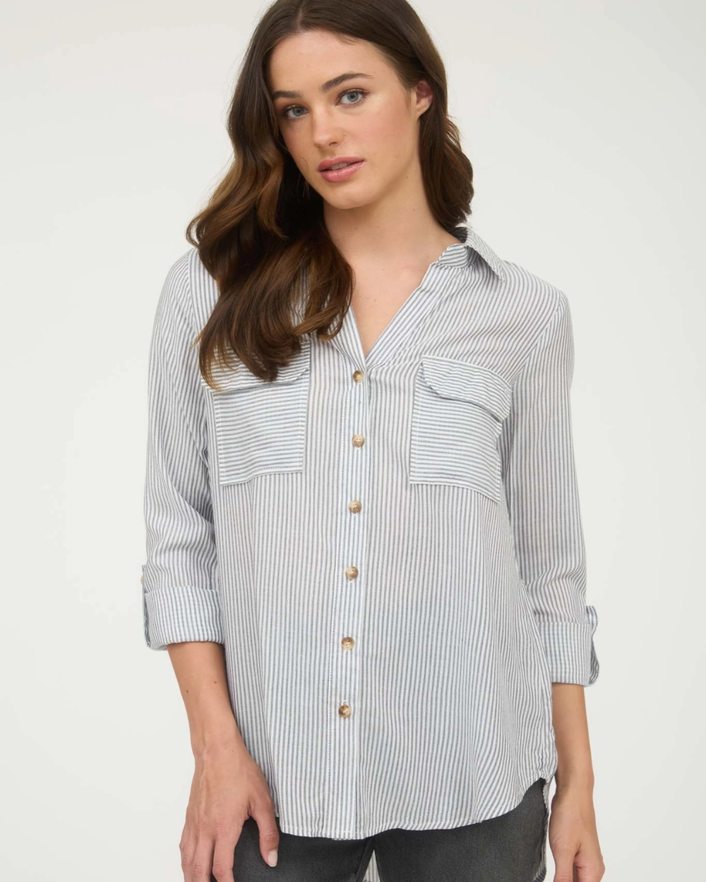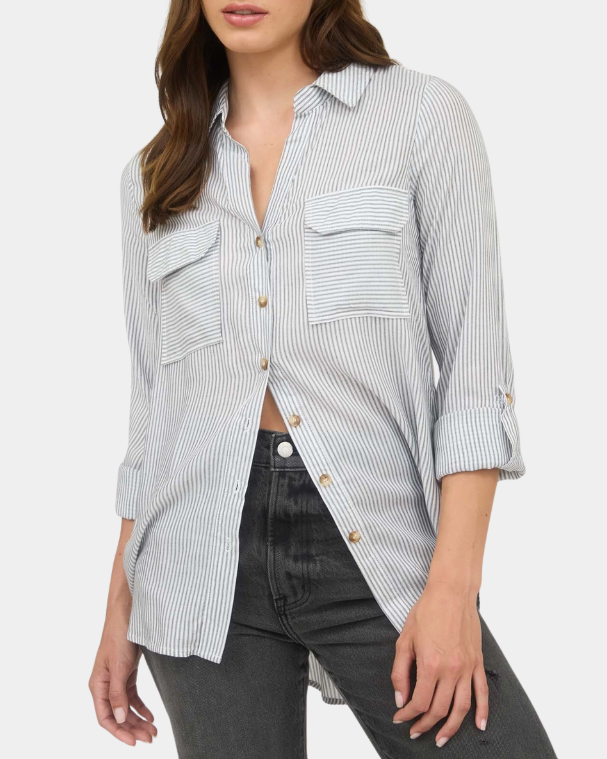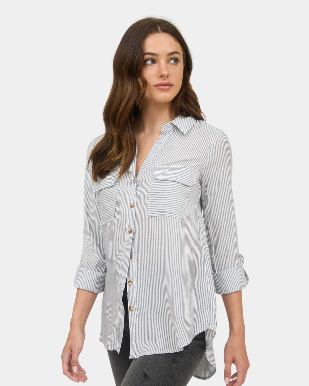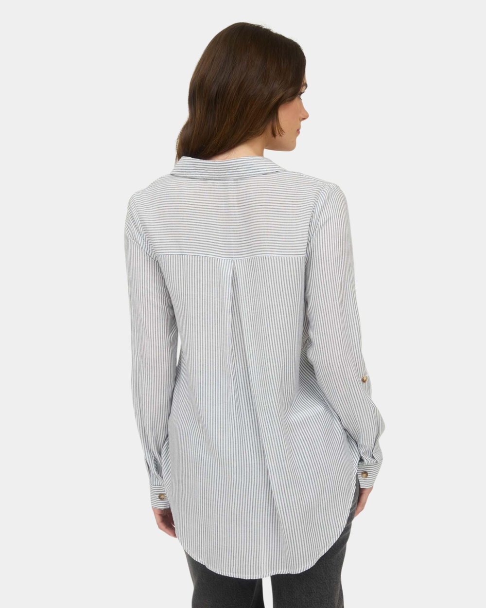 A timeless striped button-down that effortlessly transitions from casual to polished. The refined collar and tailored silhouette offer understated elegance, while the classic palette ensures it pairs seamlessly with any wardrobe.