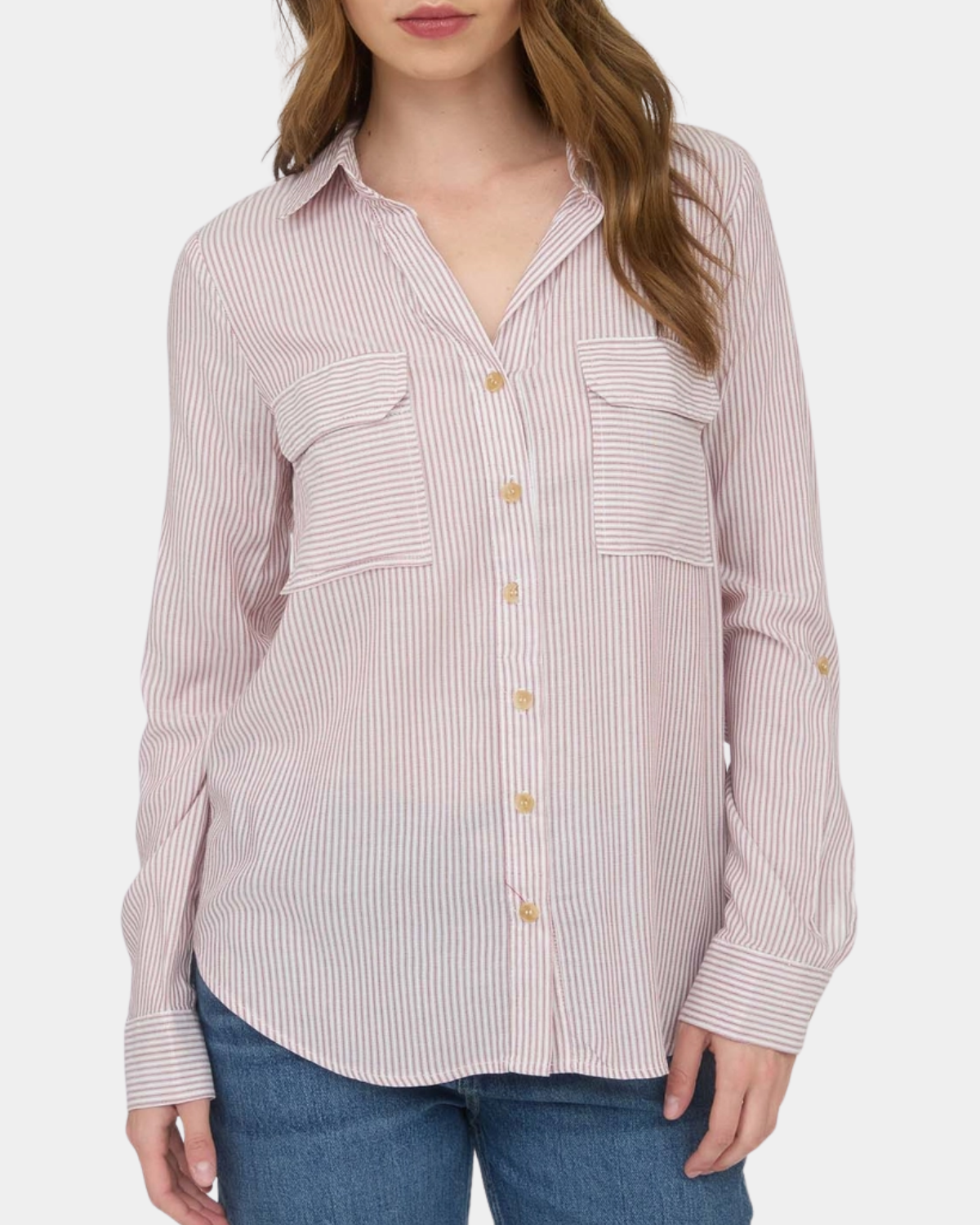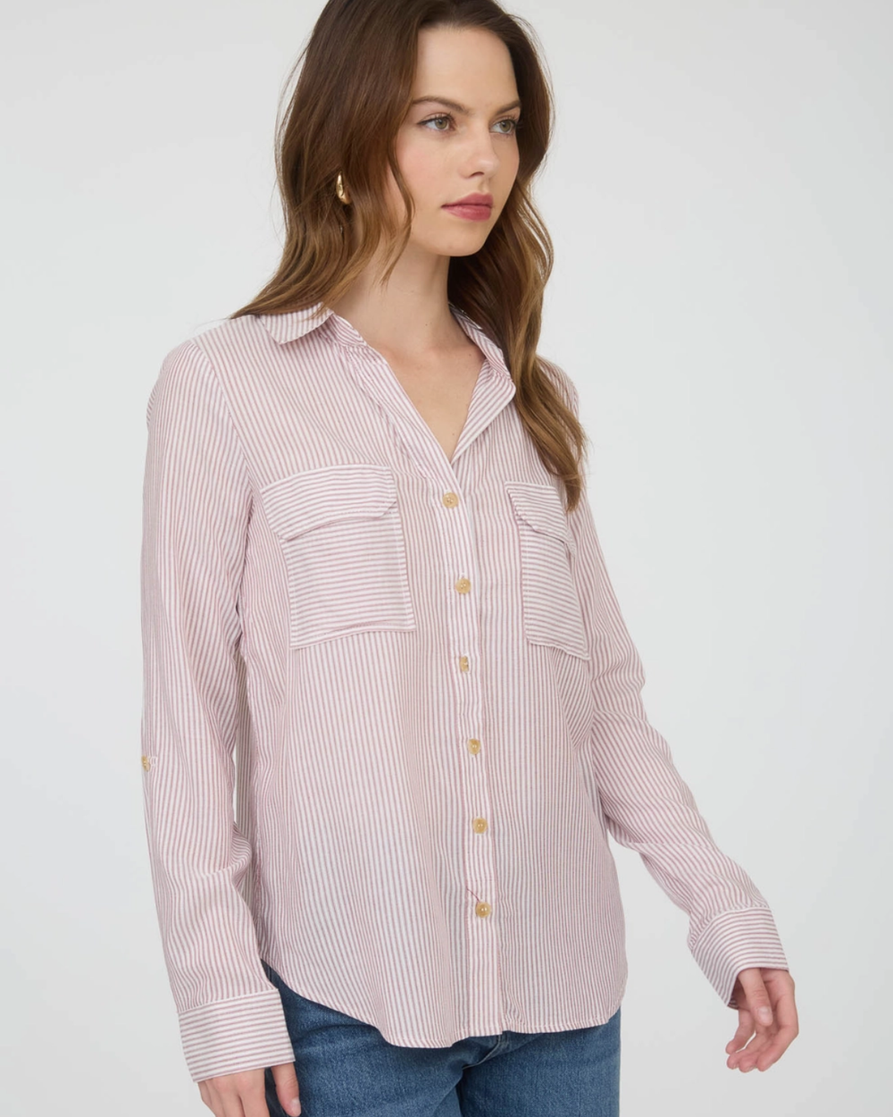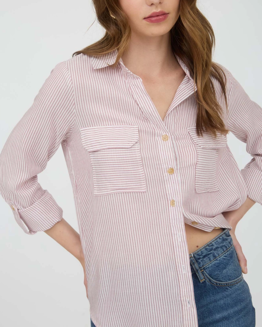 A timeless striped button-down that effortlessly transitions from casual to polished. The refined collar and tailored silhouette offer understated elegance, while the classic palette ensures it pairs seamlessly with any wardrobe.