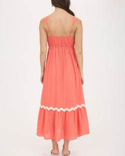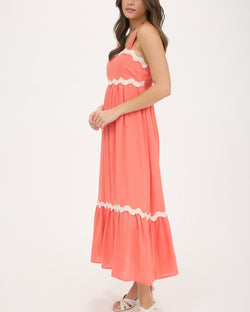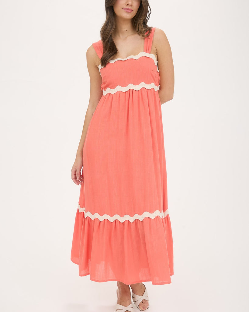 Flirt with fashion in our Wavy Trim Sleeveless Midi Dress! This coral-colored stunner features a fun, playful trim and a flattering, flowy fit. Perfect for a day out or a night on the town. (Seriously, you'll look stunning either way.)