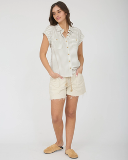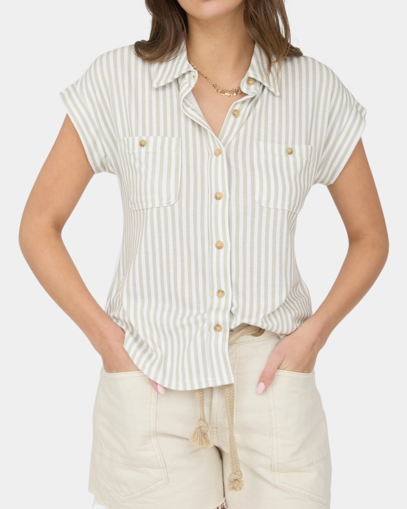 The staple top every girl needs in her wardrobe. This top features an all over vertical stripe and two front pockets. Pair this with your favorite jeans for an effortless yet chic outfit.