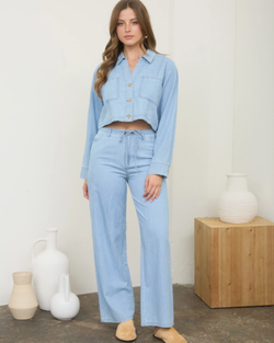 These soft, vintage-inspired denim pants drape beautifully, giving you that effortless vibe without any fuss. Grab the matching denim top and you've got an instant outfit that's fun, coordinated, and totally you.