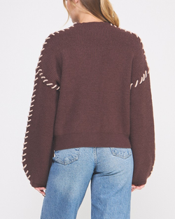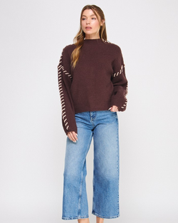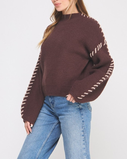 Wrap yourself in this lofty mock neck sweater that's got serious style credentials thanks to its striking contrast stitching. The warm brown sand tone is your new go-to for those days when you want to feel put-together without trying too hard.