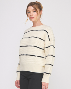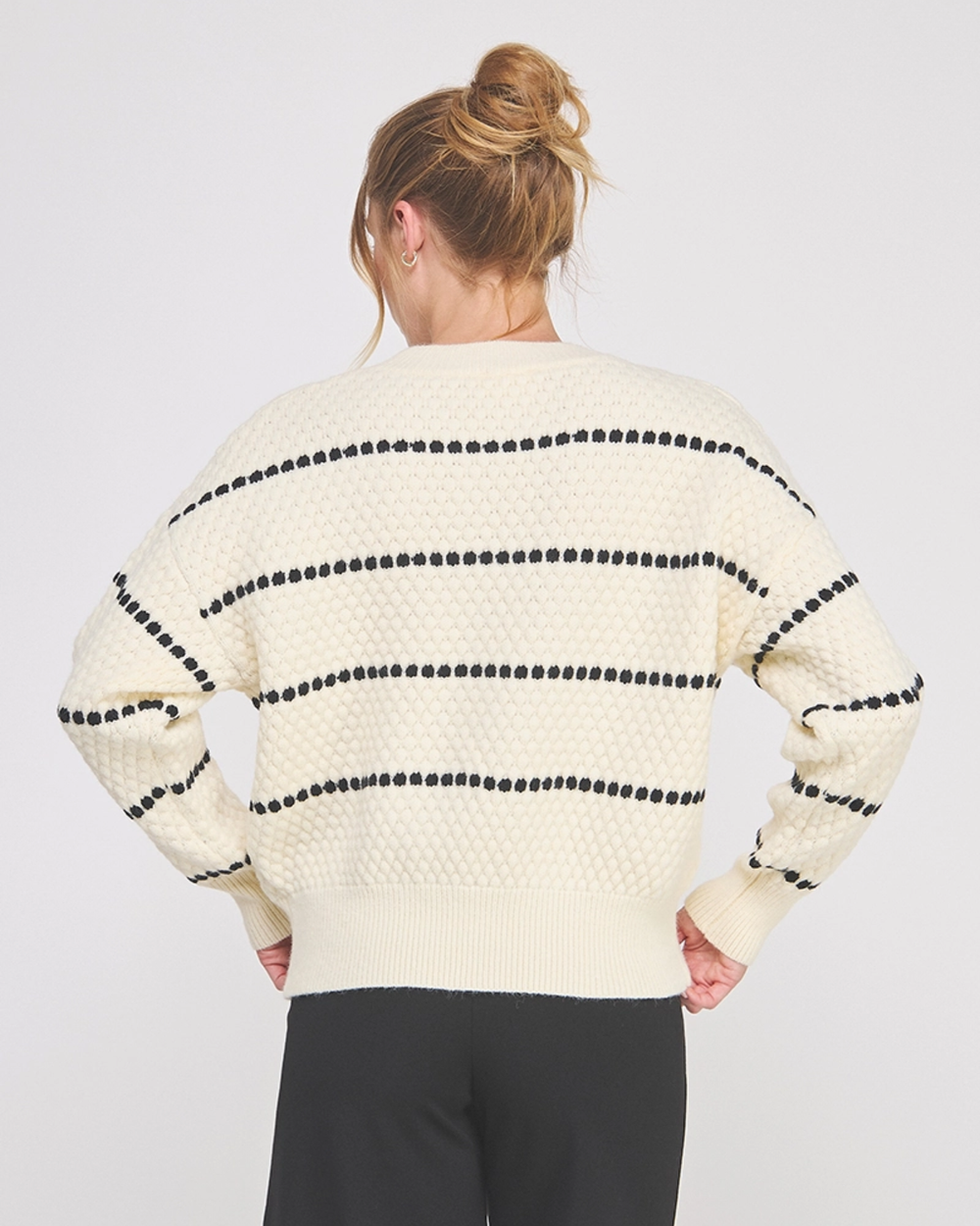 Cozy up in our Pebble Stripe Sweater, where playful texture meets classic stripes. This lofty, pebble-textured knit adds fun dimension, while the accent stripe brings a pop of charm.