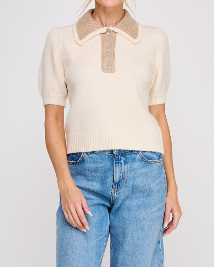 This Vanilla Collared Puff Short Sleeve Top brings flirty charm with its playful puffed sleeves and classic collar. Light and breezy, it’s perfect for adding a sweet twist to any day.