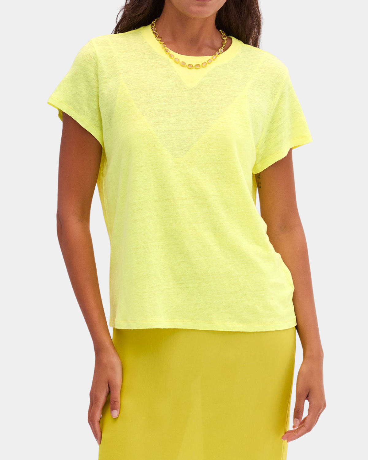 Lightweight linen perfection with a playful V-stitch accent and dreamy drape. Cool, comfortable, and impossibly chic.